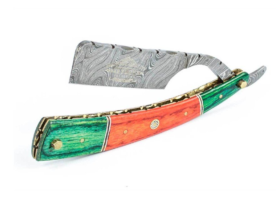 Straight Razor DR-14350 (Orange/Green wood, Damascus steel)
